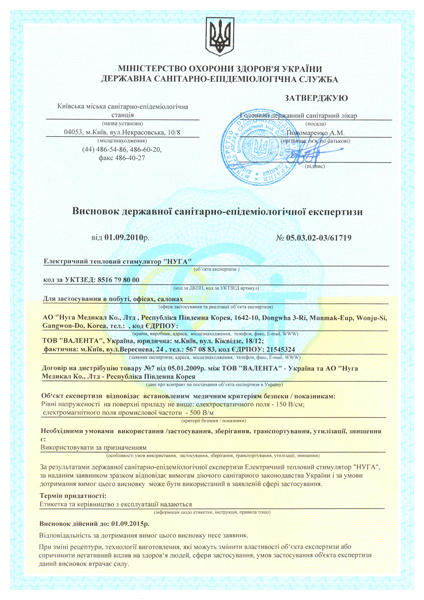 Заключение государственной санитарно-эпидемиологической экспертизы
